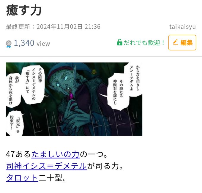 あと、胎界主Wikiでは癒す力がタロット二十型と書かれてるんだけれど、上記の通り確定はしてないよね?